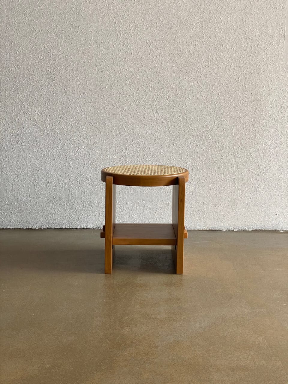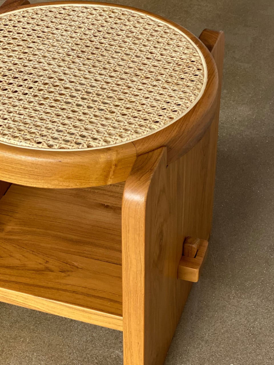 Solid wood round top with handwoven rattanbase