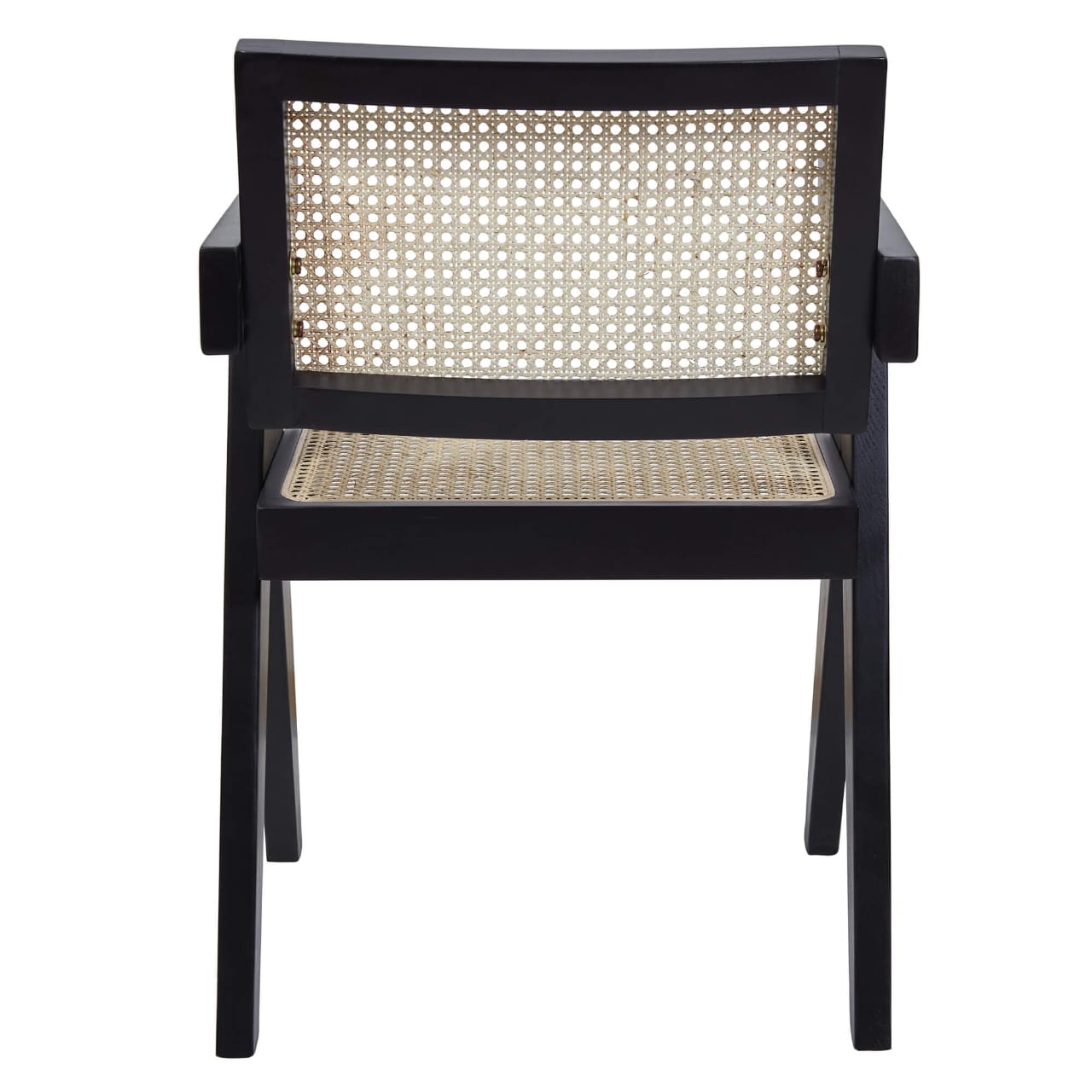 wooden frame and a woven cane or rattan backrest and seat, this chair offers