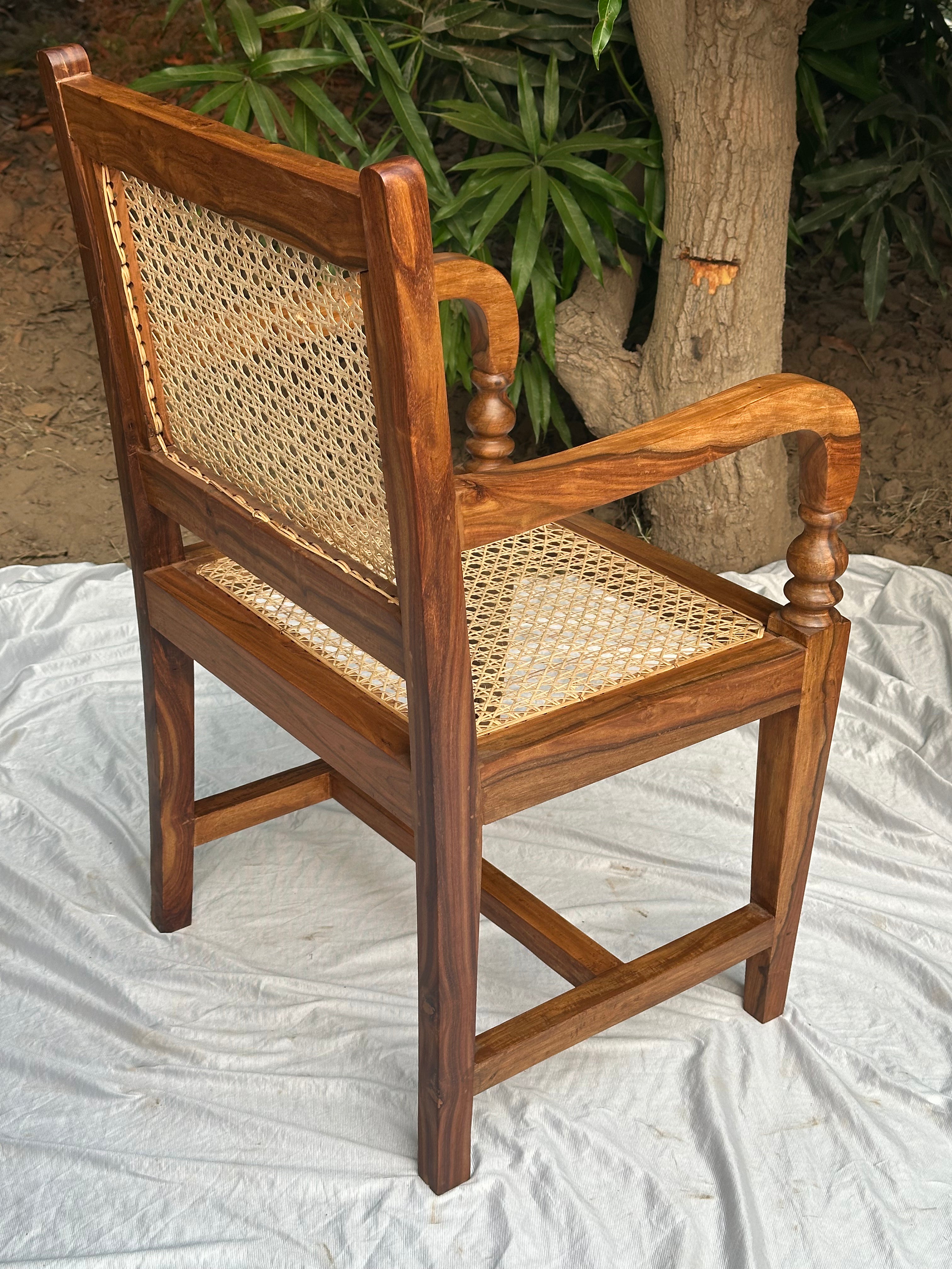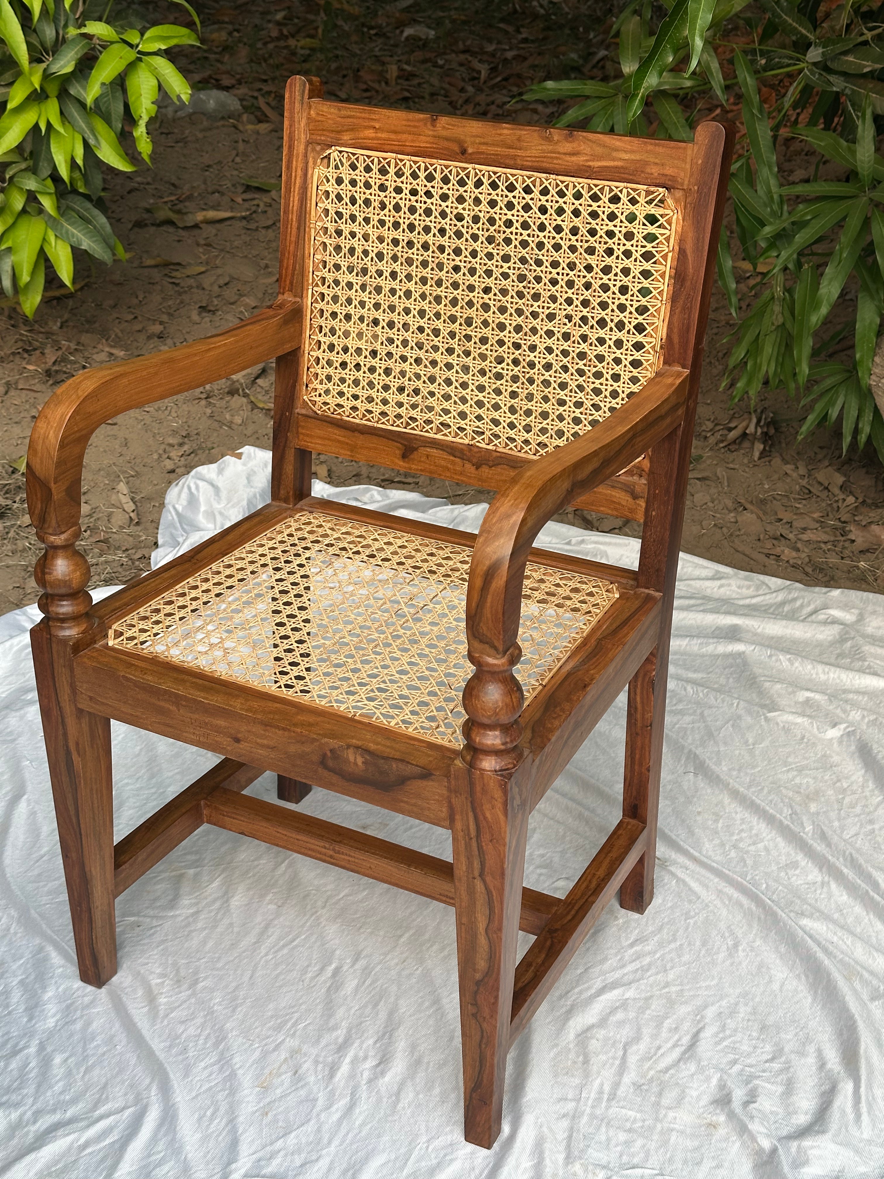 Discover comfort and craftsmanship with our Canework Chair, thoughtfully handcrafted with a blend of premium wood and natural cane weaving