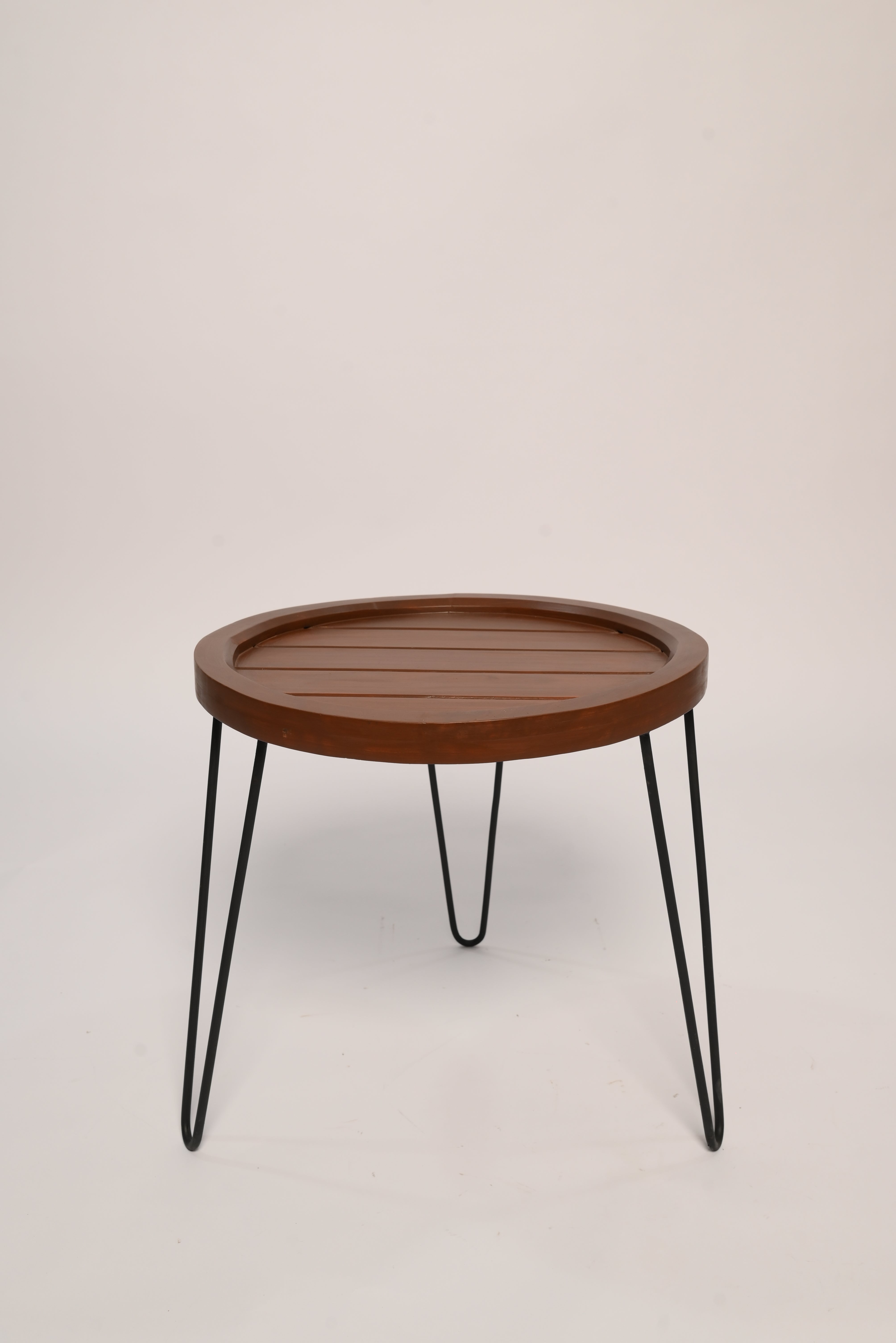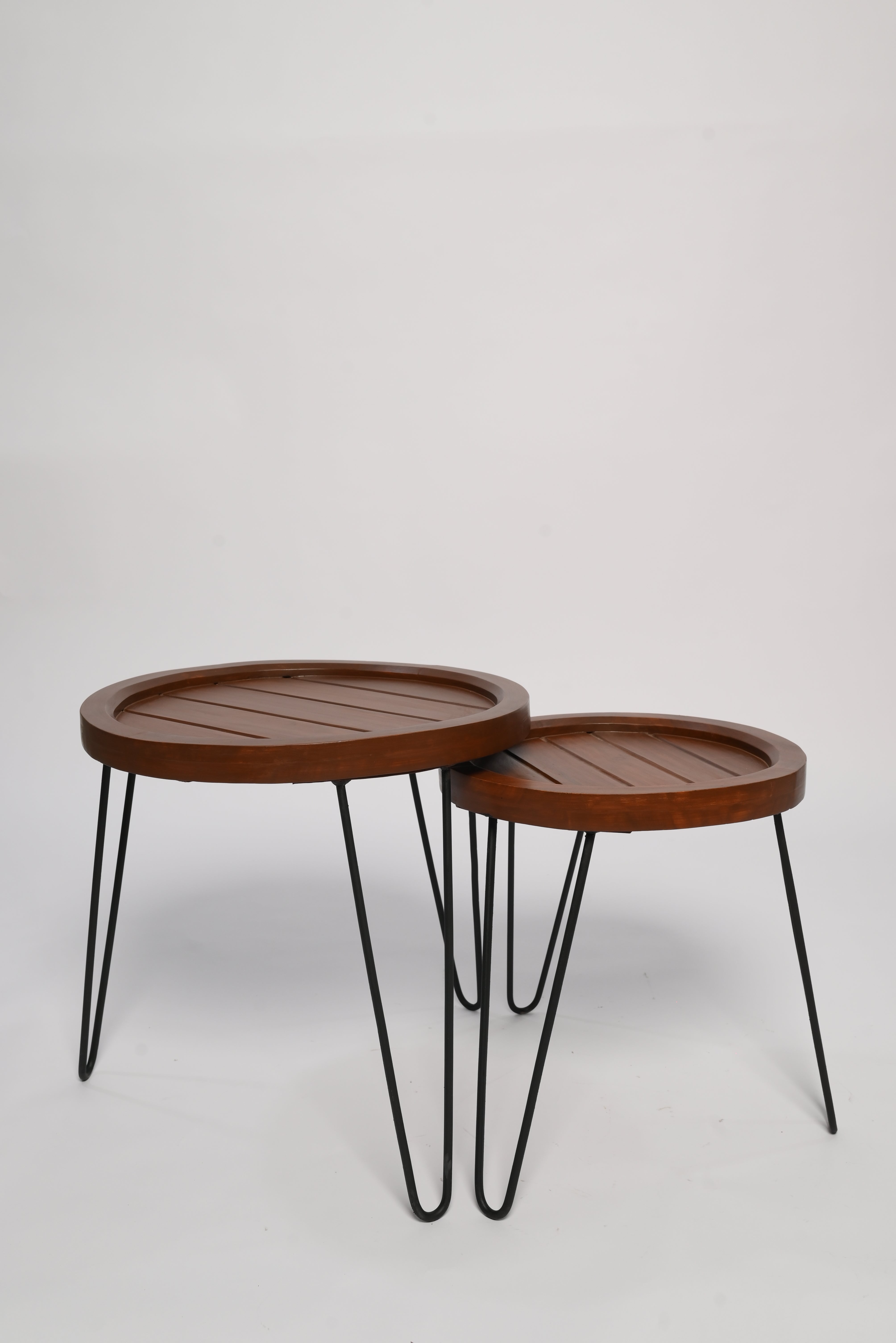 This set of Heritage: Solid Wood Nesting Tables with Metal Legs featuring solid wood tops and metal legs brings functional charm and industrial style to your space.