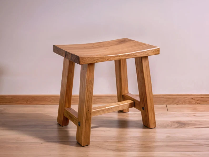 polished wooden frame, this stool embodies timeless elegance and natural charm.